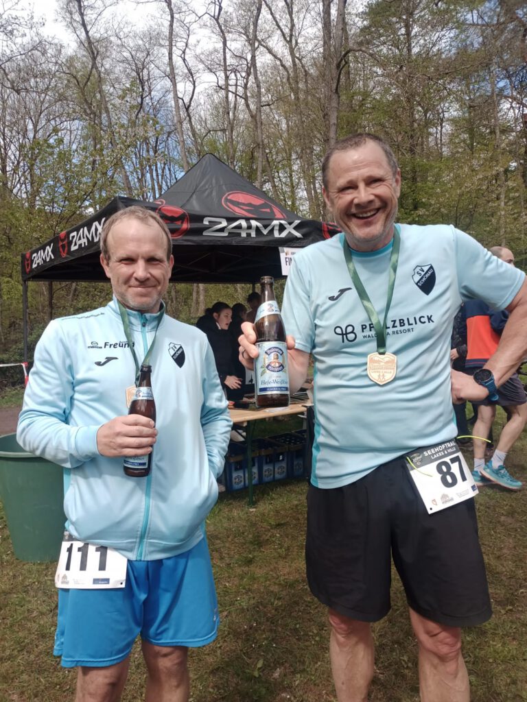 Zum ersten Mal veranstaltete der FC Erlenbach den Seehoftrail Lakes and Hills. Der Lauf war gleichzeitig die Auftaktveranstaltung zum Wasgaucup 2026. Unter den 200 Startern waren unsere beiden unverwüstlichen Torsten und Frank dabei, die auf der Strecke über 10,4 Kilometer starteten. Die gut präparierte Strecke beinhaltete 3 Steigungen der ersten Güte. Unterwegs feuerten Alphorn und Hornbläser sowie Trommler die Läufer an. Auf herrlichen Waldwegen ging es vorbei an den höchsten Douglasien des Dahner Felsenlandes ehe man die letzte Schlussrunde um den See absolvieren musste.